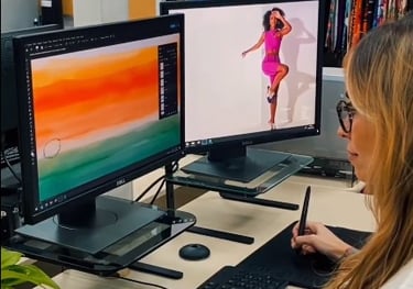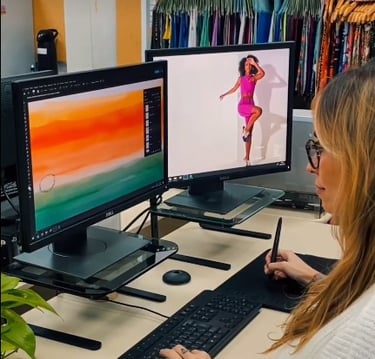 Nossos serviços incluem criação de briefing de estampas, modelagens inspiradas em nossas coleções e desenvolvimento de cores exclusivas para sua confecção.